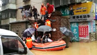 武漢漢口一小區(qū)被淹 街邊商戶門前掃水