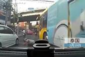 公交車失控撞來 女子敏捷跳車逃生