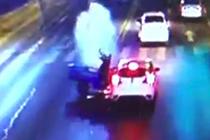 女子車流中連闖2次紅燈 交警奮不顧身撲救
