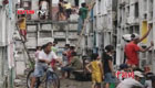 【解說】中午12點(diǎn)左右,河水再次倒灌村莊,災(zāi)情雪上加霜,村內(nèi)最深水位一度達(dá)到2米多,位于靠山的老村寨多為土木建筑,經(jīng)過長時(shí)間洪水浸泡后更加危險(xiǎn)。