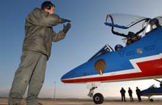 10月9日和10日,法國(guó)空軍“法蘭西巡邏兵”飛行表演隊(duì)將隨希拉克總統(tǒng)到訪北京,為首都人民獻(xiàn)上兩場(chǎng)經(jīng)典的“空中芭蕾”。據(jù)悉,這是西歐國(guó)家空軍特技飛行表演隊(duì)首次訪華做公開(kāi)表演,隨后他們將前往武漢等地進(jìn)行巡回表?/span>