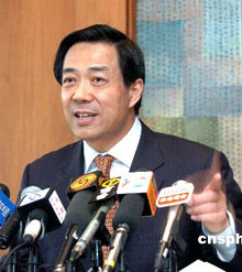 商務(wù)部長薄熙來在香港接受記者聯(lián)合采訪側(cè)記(圖)