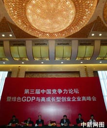 由中國(guó)新聞社主辦的第三屆中國(guó)競(jìng)爭(zhēng)力論壇暨綠色GDP與高成長(zhǎng)型企業(yè)高峰論壇10日在北京人民大會(huì)堂開幕。本次論壇的主題是“倡導(dǎo)‘十一五’綠色成長(zhǎng)理念,打造高成長(zhǎng)型企業(yè)”。