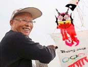 河南76歲老人 放飛奧運(yùn)主題風(fēng)箏 |