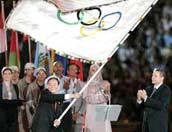 北京奧運(yùn)會籌備大事回顧 王岐山在雅典接過奧運(yùn)會旗 |
