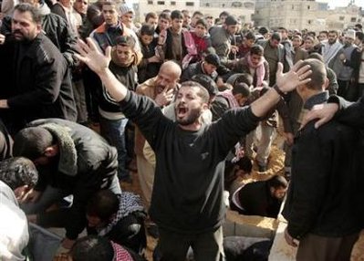 第六日 哈馬斯領導人尼扎爾•拉揚的住所遭到以軍轟炸,他本人及多名家人喪生。這是以軍空襲加沙以來首次炸死哈馬斯高級領導人?偹劳鋈藬祫t上升至410人,2000多人受傷。當天,以色列國防部公布了“鑄鉛行動”的最新戰(zhàn)報,稱已摧毀了哈馬斯位于加沙的450處據點,有25處是在新年第一天的襲擊中擊毀的。另外,聯(lián)合國安理會召開會議,就呼吁加沙地帶實現停火的決議草案進行討論,但因英美反對而未獲通過。【詳細】