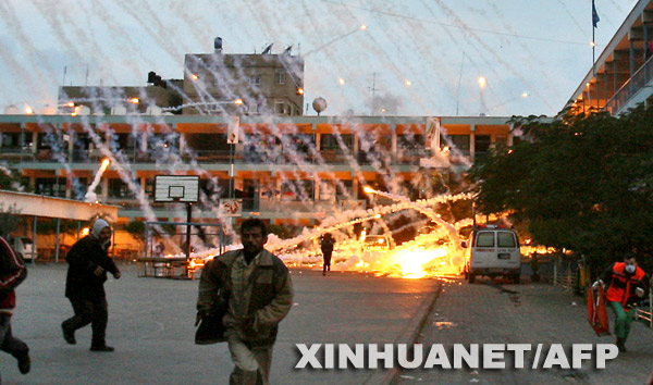 第十一日 以色列軍隊6日繼續(xù)從海陸空三方面向加沙地帶發(fā)動軍事打擊,連續(xù)兩次擊中聯(lián)合國聯(lián)合國在加沙開辦的學校,導致55人死亡。另外,以軍還空襲了一所由學校改造的難民營。另外,以軍坦克還首次開進加沙地帶南部最大城市汗尤尼斯,以軍戰(zhàn)機也對這座城市進行了轟炸。以色列總理奧爾默特提出了;鸬膬纱髼l件:終止埃及和加沙地帶之間的武器走私,終止巴勒斯坦武裝組織針對以色列的所有攻擊。當天,總死亡人數達660人,2950人受傷。【詳細】