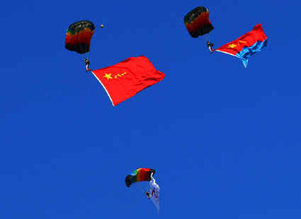 空軍60周年飛行跳傘表演上演“仙女下凡”