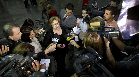 圖:巴西副總統(tǒng)在里約熱內(nèi)盧機(jī)場舉行記者會
