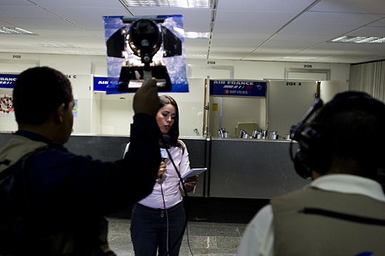 圖:媒體記者在里約熱內(nèi)盧機(jī)場等待最新消息