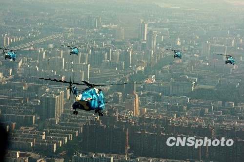 國(guó)慶閱兵:直升機(jī)梯隊(duì)飛過(guò)北京上空