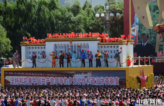 圖:張國(guó)立與鄧婕等觀禮國(guó)慶慶典