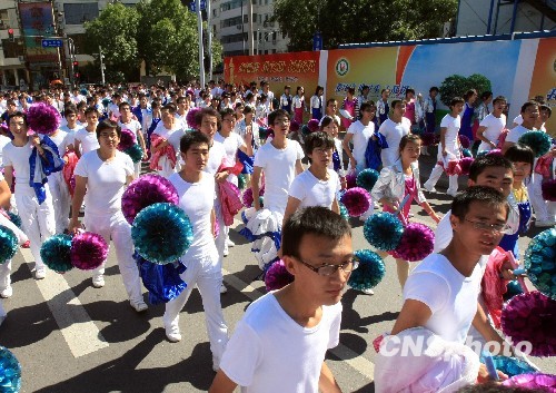 圖:神七航天員亮相群眾游行隊(duì)伍