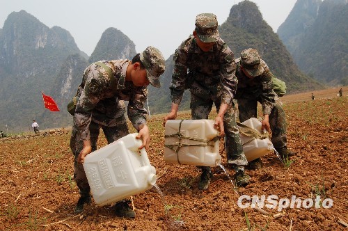組圖:廣西旱區(qū)的送水女兵