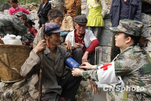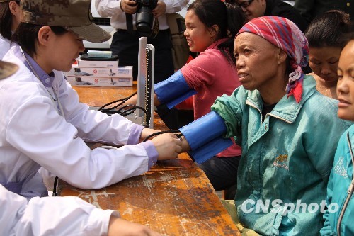 圖:解放軍為廣西旱災(zāi)區(qū)民眾送藥看病