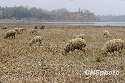 貴州最大淡水湖遇旱縮水 村民“海”上牧羊