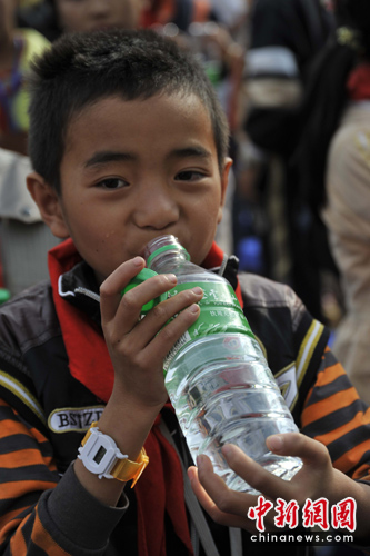 圖:廣西旱區(qū)兒童喜領(lǐng)愛心水