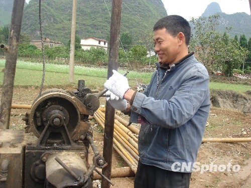 圖:廣西陽(yáng)朔縣農(nóng)民打井抗旱