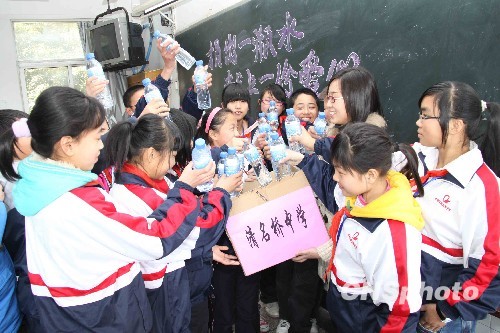 圖:江蘇無(wú)錫中學(xué)生開展向?yàn)?zāi)區(qū)捐水活動(dòng)