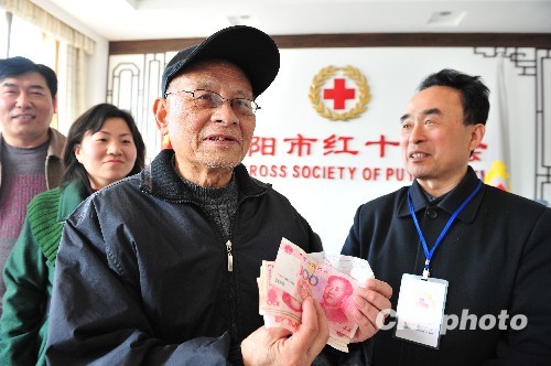 圖:中原油田退休職工為抗旱救災(zāi)捐款