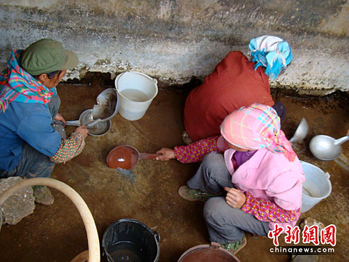 圖:云南干旱重災(zāi)區(qū)村民“刮水”解渴