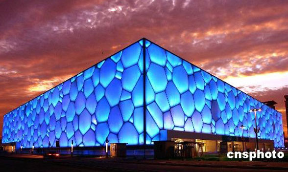 國(guó)家游泳中心又被稱為“水立方”(Water Cube),位于北京奧林匹克公園內(nèi),是北京為2008年夏季奧運(yùn)會(huì)修建的主游泳館,也是2008年北京奧運(yùn)會(huì)標(biāo)志性建筑物之一。它的設(shè)計(jì)方案,是經(jīng)全球設(shè)計(jì)競(jìng)賽產(chǎn)生的“水的立方”([H2O]3)方案。2003年12月24日開(kāi)工,在2008年1月28日竣工。其與國(guó)家體育場(chǎng)(俗稱鳥巢)分列于北京城市中軸線北端的兩側(cè),共同形成相對(duì)完整的北京歷史文化名城形象。做為北京2008年夏季奧運(yùn)會(huì)修建的主游泳館,與國(guó)家體育場(chǎng)“鳥巢”同時(shí)被稱為2008年北京奧運(yùn)會(huì)標(biāo)志性建筑物。