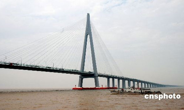 杭州灣跨海大橋(Hangzhou Bay Bridge)是一座橫跨中國(guó)杭州灣海域的跨海大橋,2008年5月1日試運(yùn)營(yíng)通車(chē)。它北起浙江嘉興海鹽鄭家埭,南至寧波慈溪水路灣,全長(zhǎng)36公里,是世界上最長(zhǎng)的跨海大橋,比連接巴林與沙特的法赫德國(guó)王大橋還長(zhǎng)11公里,成為繼美國(guó)的龐恰特雷恩湖橋后世界第二長(zhǎng)的橋梁。杭州灣跨海大橋是國(guó)道主干線-同三線跨越杭州灣的便捷通道。大橋北起嘉興市海鹽鄭家埭,跨越寬闊的杭州灣海域后止于寧波市慈溪水路灣,全長(zhǎng)36km。大橋建成后將縮短寧波至上海間的陸路距離 120余公里,從而也大大緩解已經(jīng)擁擠不堪滬杭甬高速公路的壓力,形成以上海為中心的江浙滬兩小時(shí)交通圈。