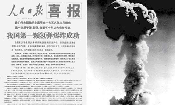 在氫彈爆炸成功的同時(shí),中國政府重申:“中國進(jìn)行必要而有限制的核試驗(yàn),發(fā)展核武器,完全是為了防御,其最終目的就是為了消滅核武器”。“在任何時(shí)候,任何情況下,中國都不會(huì)首先使用核武器。”