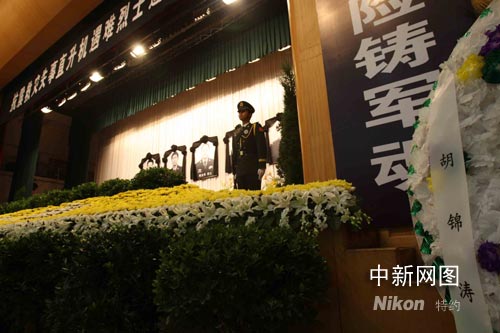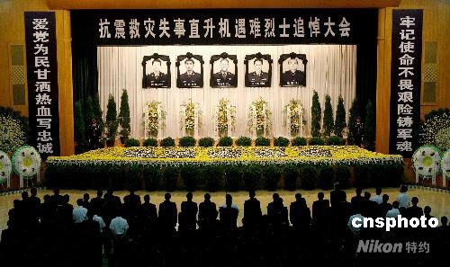 圖:失事直升機(jī)組遇難烈士追悼會舉行