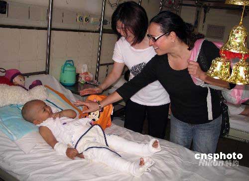 圖:加拿大國際組織友人看望地震小傷員