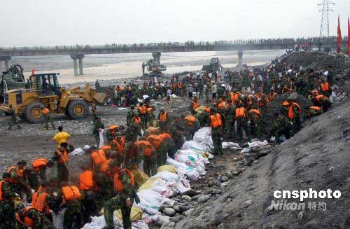 圖:救援官兵成功封堵綿遠(yuǎn)河大堤潰口