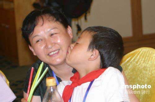 圖:四川災(zāi)區(qū)孩子感恩 深吻心理輔導(dǎo)老師