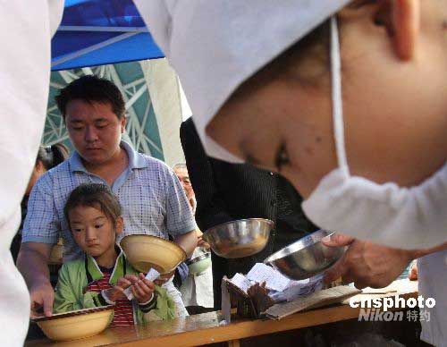 圖:地震災(zāi)區(qū) 父女領(lǐng)取父親節(jié)免費午餐