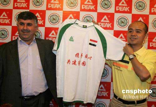 圖:伊拉克隊著“愛心球衣”聲援中國災(zāi)區(qū)
