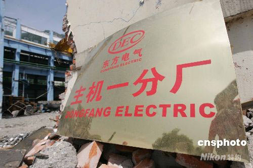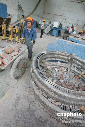 圖:東方汽輪機廠清理災后廠房準備重建(5)