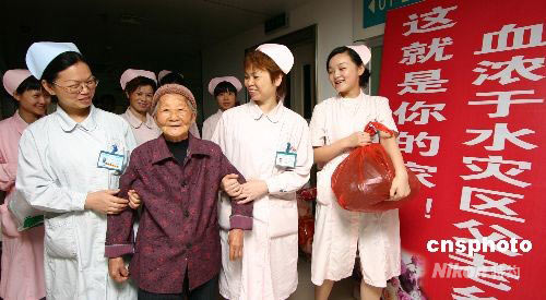 圖:地震災區(qū)百歲老人傷愈返家鄉(xiāng)