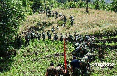 圖:解放軍在藏寨廢墟中搶救珍貴文物