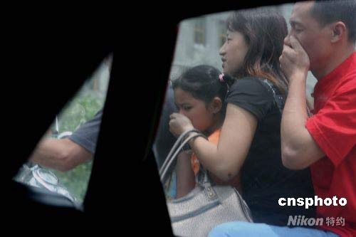 圖:幸存者在向娥中學廢墟中尋找遺物