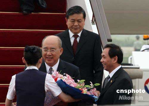 圖:中國國民黨主席吳伯雄一行抵達(dá)北京
