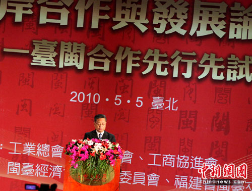 圖:黃小晶在臺(tái)閩合作先行先試論壇發(fā)表演講
