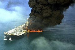 組圖:迪拜港口油輪與集裝箱貨船相撞起火