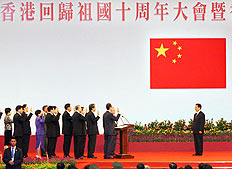 慶祝香港回歸祖國十周年大會暨香港特區(qū)第三屆政府宣誓就職典禮七月一日在香港會展中心舉行。中共中央總書記、國家主席、中央軍委主席胡錦濤出席并作重要講話。[全文]