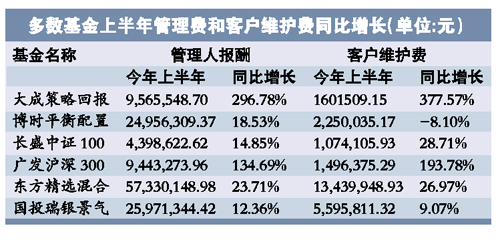 據(jù)天相投顧統(tǒng)計(jì),已公布半年報(bào)基金公司上半年合計(jì)取得管理費(fèi)收入為51.13億元,比去年同期多收7.05億元,增長(zhǎng)16.01%。