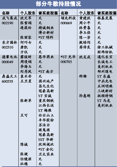 前期的牛散劉芳、葉晶、黃木順、鄒瀚樞和錢小妹等,盡管受到的關(guān)注減少,但并未從上市公司中消失。半年報顯示,劉芳和葉晶又雙雙介入澳洋順昌,分別持有147萬股和89萬股。錢小妹則押寶南洋科技和漢王科技。