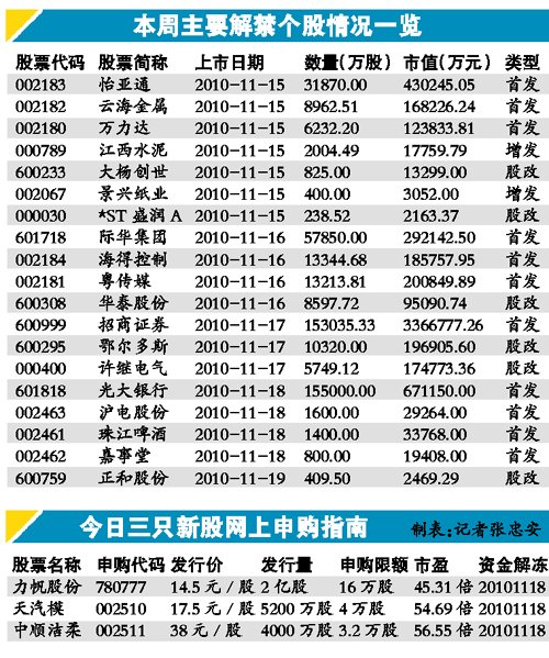 西南證券分析師張剛表示,本周3家首發(fā)機(jī)構(gòu)配售股份解禁的公司珠江啤酒、嘉事堂、滬電股份均為深市中小板公司,解禁股數(shù)占原流通股的比例均為25%,占總股本比例均為5%左右,存在較大的套現(xiàn)壓力。