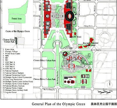 可供16000名運動員、教練員及隨行人員居住,臨近主要比賽場館。 奧運村分為居住區(qū)和國際區(qū),環(huán)境優(yōu)美,舒適方便,安靜安全。 記者村:占地30公頃,建筑面積約40萬平方米,記者到達(dá)公園內(nèi)的比賽場館,時間不超過6分鐘。 |