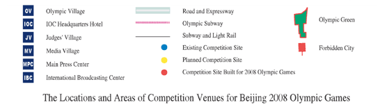 北京舉辦2008年奧運會,設(shè)28個比賽項目,使用37個比賽場館,59個訓(xùn)練場,37 個比賽場館中32個在北京,5個在其他城市:分別是:青島帆船中心和天津,秦皇島、沈陽、上海四個足球賽場。 北京的比賽場館中,使用現(xiàn)有的13個,計劃修建的11個,專為奧運會興建的8個,這些場館均按照國際單項組織的要求改建或新建,其選址、設(shè)計、施工及賽后利用等將充分體現(xiàn)北京2008年奧運會的綠色奧運、人文奧運、科技奧運的理念。