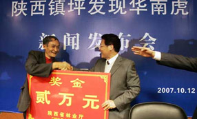 10月12日,陜西省林業(yè)廳宣布陜西發(fā)現(xiàn)華南虎,并公布據(jù)稱為陜西安康市鎮(zhèn)坪縣城關鎮(zhèn)文采村村民周正龍2007年10月3日拍攝到的華南虎照片。