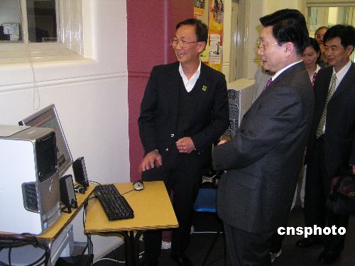 中國國務(wù)院僑務(wù)辦公室副主任馬儒沛(左二)十一月三日在悉尼參觀“雪梨中文學(xué)!。中新社發(fā) 葛明 攝
