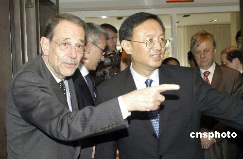 當(dāng)?shù)貢r間11月26日,中國外交部長楊潔篪(右)在美國首都華盛頓會見了前來參加中東和會的歐盟理事會秘書長兼歐盟負(fù)責(zé)外交和安全政策的高級代表索拉納。中新社發(fā) 邱江波 攝